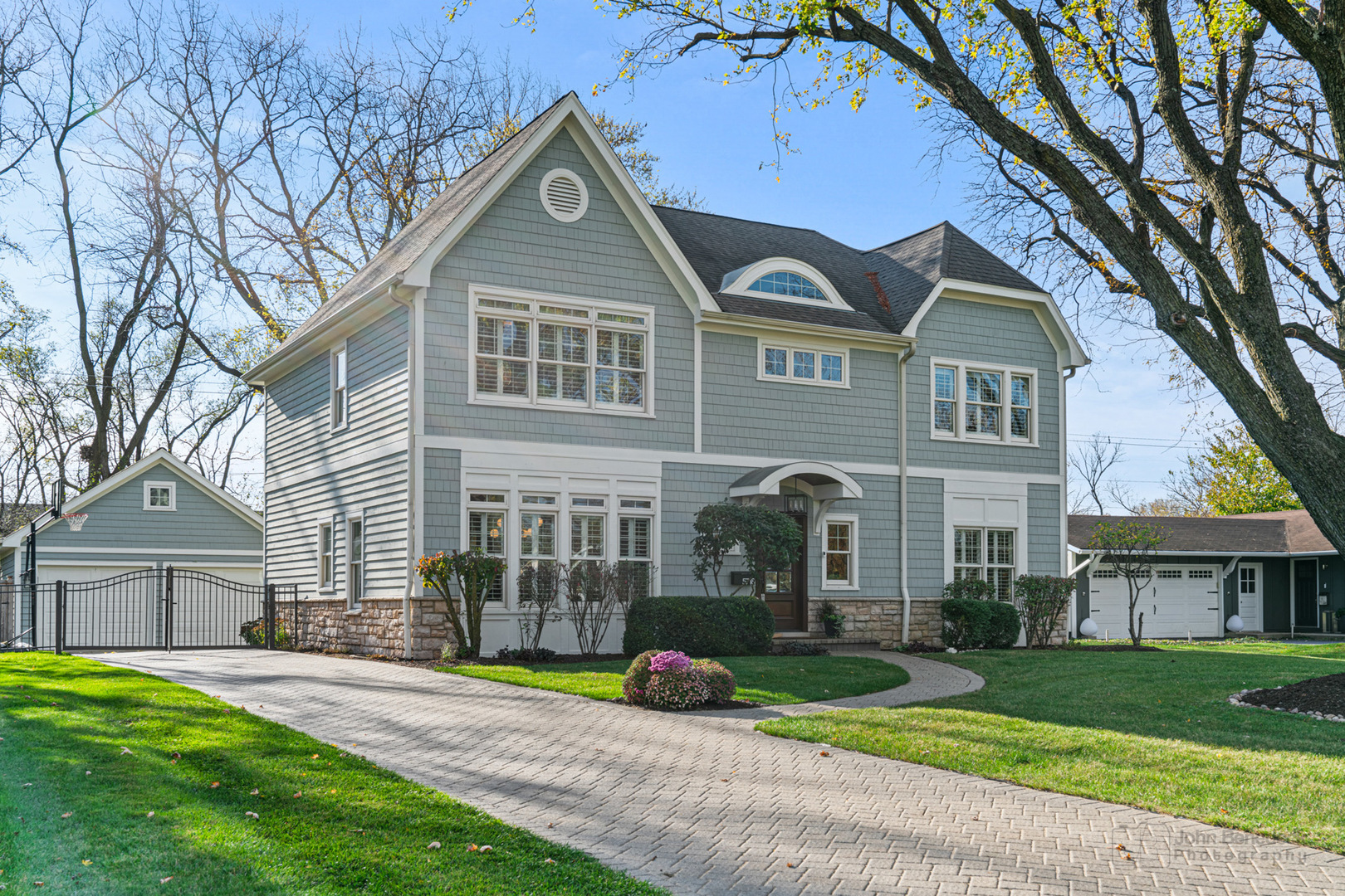 Absolutely gorgeous 5Bed/4.5Bath Western Springs home! Sun-filled home features eat-in kitchen with custom cabinetry, stainless steel appliances with brand new dishwasher & range, stone backsplash, granite countertops, new lighting throughout main floor, custom window treatments, living room with gas fireplace, granite wet bar, built-out office area, and refinished hardwood floors. Large primary suite has vaulted ceiling, custom closets, glass stone shower separate from soaking tub, and double vanity. Second floor includes 3 additional upstairs bedrooms with custom closets, two full stone baths, and laundry area. Fully just rehabbed basement has huge living space, LVT flooring throughout, added 5th full bedroom, added full bathroom with glass shower & contemporary tiling, and huge storage area. All new carpeting in the bedrooms. Hot water heater, sump pump, and ejector were replaced last year. Gorgeous backyard has freshly resealed pavers, new sprinkler system, recently added fence and gates, as well as the two-car garage. Exterior of home and interior of home was just repainted within the past two years. Ideal location in the Ridgewood neighborhood in Highlands and Lyons Township school district!